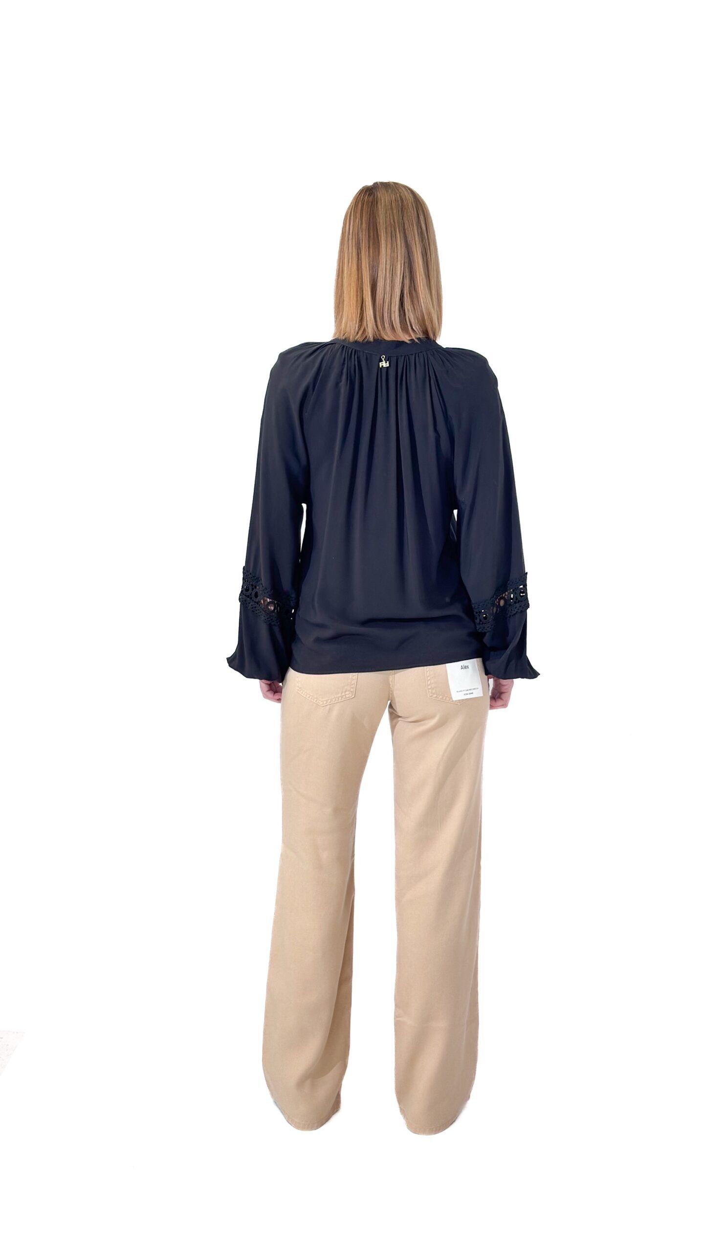 CZARNA LUŹNA BLUZKA Z WISKOZY Z DŁUGIM RĘKAWEM ARTIGLI ACBL000895