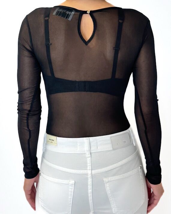 BLUZKA CZARNE BODY Z SIATECZKI Z DŁUGIM RĘKAWEM REVISE LAURO