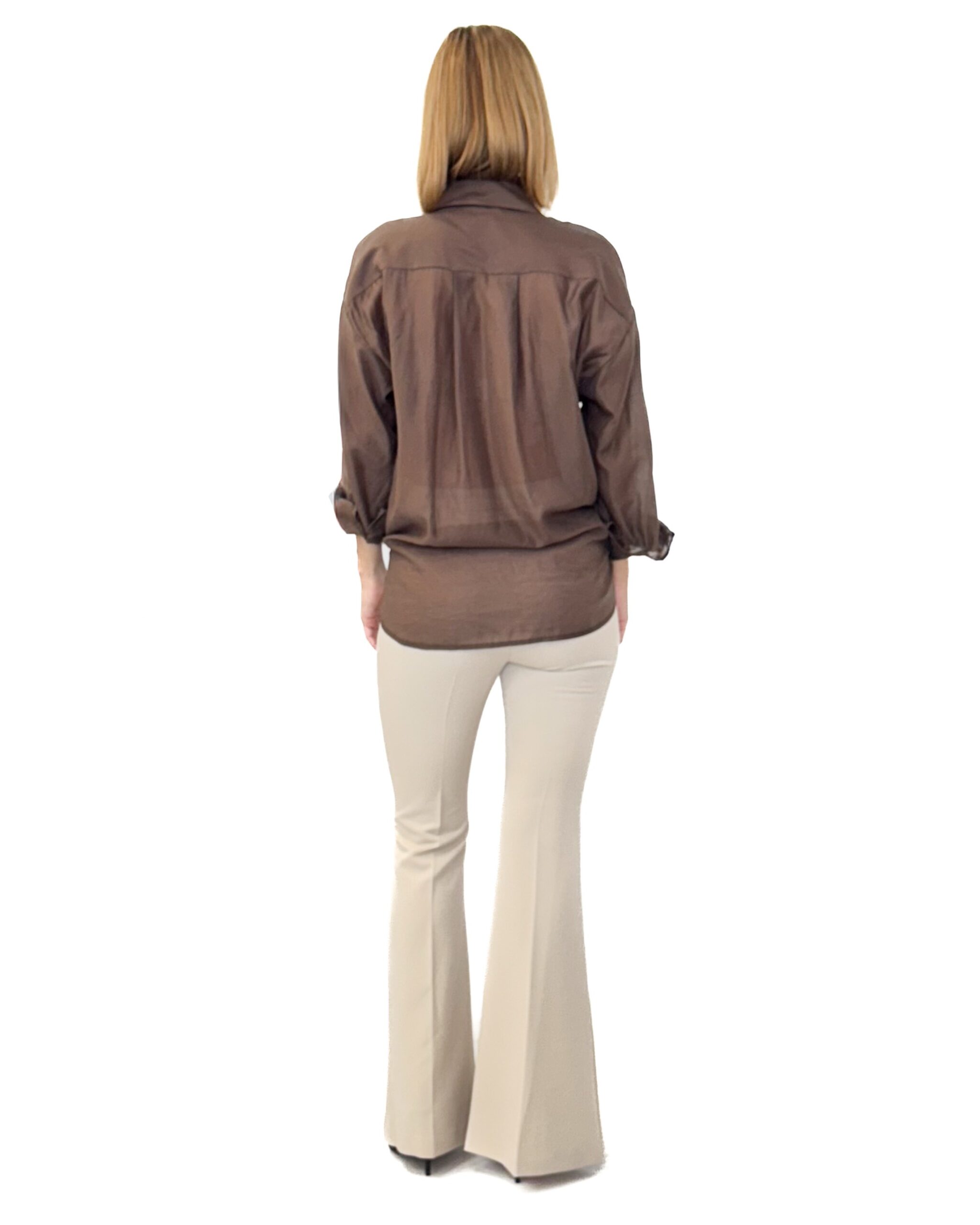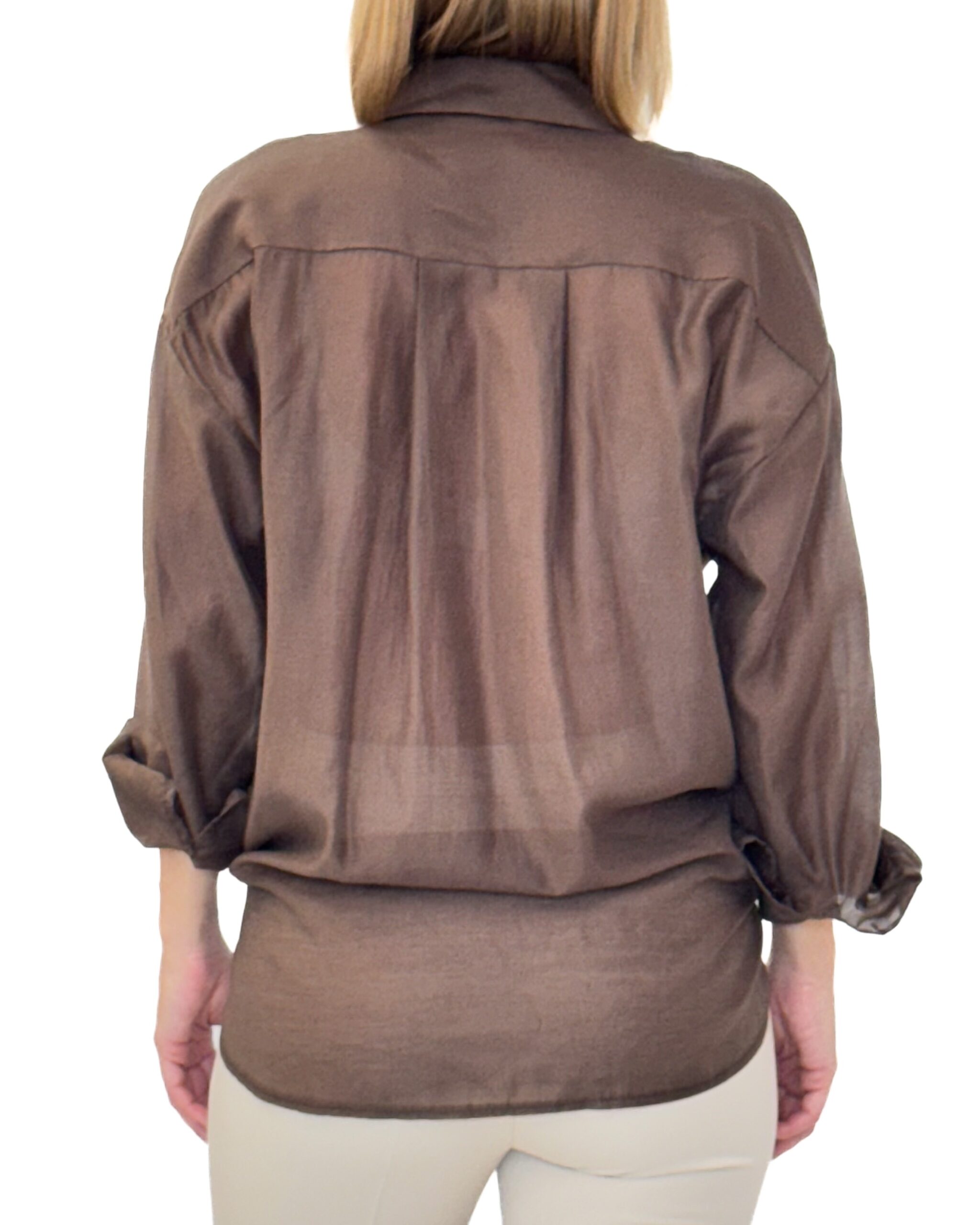 Damska, czekoladowa koszula z lyocellu o klasycznym fasonie zapinana na guziki. Stylowa i modna – idealna na każdą porę roku!