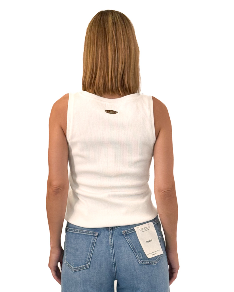 KREMOWA BLUZKA W PRĄŻEK BEZ RĘKAWÓW GIL 41XPT909