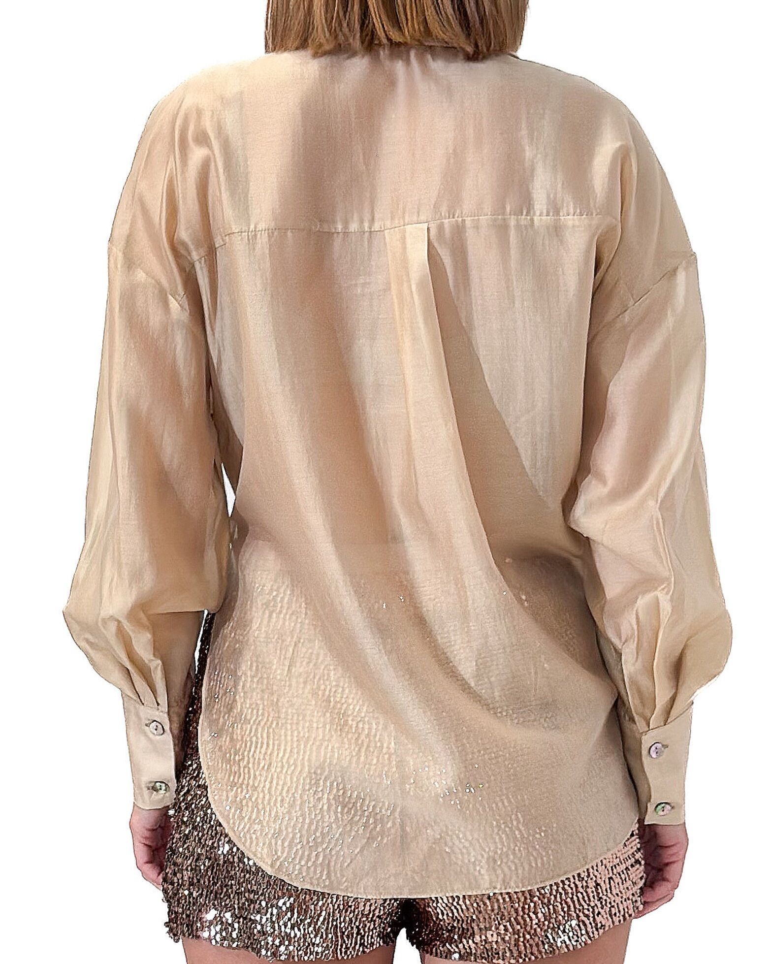 Idealna na lato, damska zwiewna koszula w kolorze beżowym zapinana na guziki. Wykonana z oddychającego, naturalnego materiału. Wiązanie z przodu dodaje jej kobiecego charakteru i pozwala na regulację długości, co świetnie podkreśla sylwetkę. Koszula świetnie sprawdzi się zarówno na co dzień, do pracy, jak i na wakacyjny spacer. Neutralny beżowy kolor pasuje do wielu stylizacji – świetnie komponuje się z szortami, jeansami czy spódnicą.