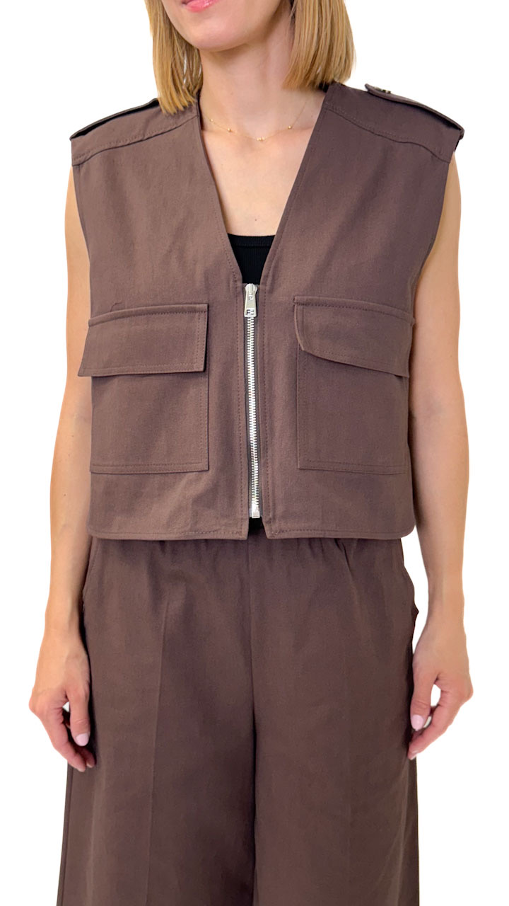 KAMIZELKA BRĄZOWA ZAPINANA NA SUWAK LUŹNY FASON IMPERIAL LC85JTX